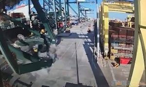 9月13日上午,在西班牙瓦倫西亞港,一架183英尺(約55米)的起重機被一艘集裝箱船撞倒。視頻顯示,48歲的羅伯托·曼內斯·布蘭科(Robe...