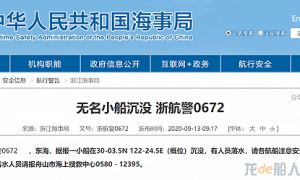 浙江海事局發布航行警告:浙航警0672,東海,據報一小船在30-03.5N 122-24.5E(概位)沉沒,有人員落水,請各航船注意安全并協...