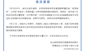 據浙江省岱山縣委宣傳部微信公眾號消息,13日岱山縣新型冠狀病毒感染的肺炎疫情防控工作領導小組辦公室發布通報稱,9月9日中午,接舟山海關通報,...