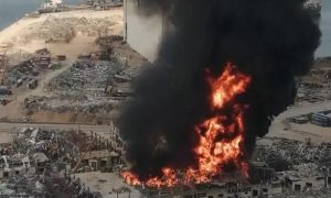 英國路透社援引黎巴嫩軍方消息人士報道稱,當地時間9月10日,黎巴嫩貝魯特港免稅區的一個石油和輪胎倉庫發生火災,大火引發的濃煙在城市上空升起巨...