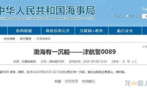 據東疆海事局消息,津航警0089渤海,據報,在38-42.470N/119-32.731E處(概位)有一沉船,請過往船舶注意避讓。津航警。