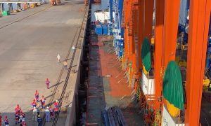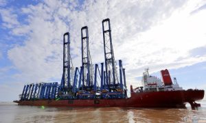 8月26日中午,振華24#輪裝載著美國南卡HLT碼頭的3臺岸橋和4臺輪胎吊駛離長興分公司。 此次發運的美國南卡HLT碼頭岸橋為該項目第二航次...