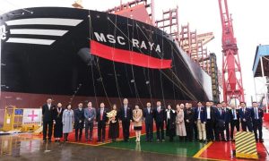 3月30日,中國船舶集團旗下江南造船聯合中船貿易為交銀金融租賃有限責任公司和瑞士地中海航運公司(MSC)建造的全球最大24100TEU級超大...
