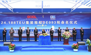 5月30日,大連中遠海運川崎船舶工程有限公司為東方海外貨柜航運有限公司建造的全球最大箱級24188TEU超大型集裝箱系列船首制船DE093船順利命名,該船命名為“OOCL PIRA...